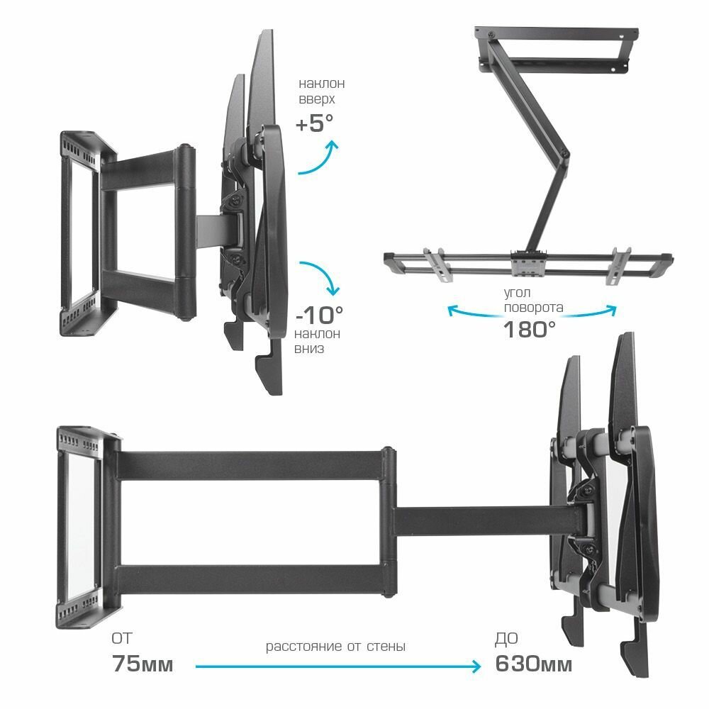 Кронштейн для телевизора на стену / крепление наклонно-поворотное Kromax GALACTIC-61 / до 90 дюймов / vesa 600x400