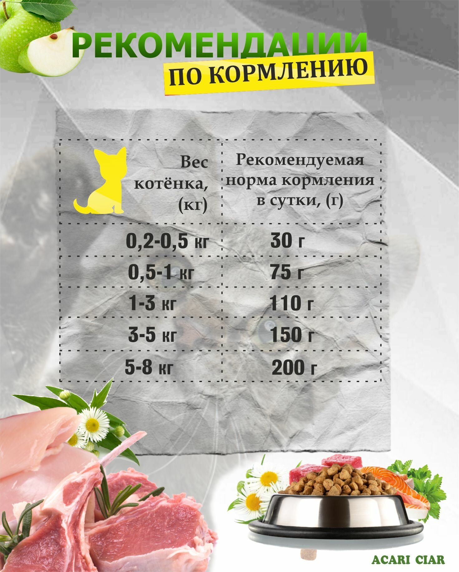 Сухой корм для кошек Acari Ciar A'CAT Starter 12 кг ( мини гранула ) Акари Киар 8 500 ₽ Подробнее