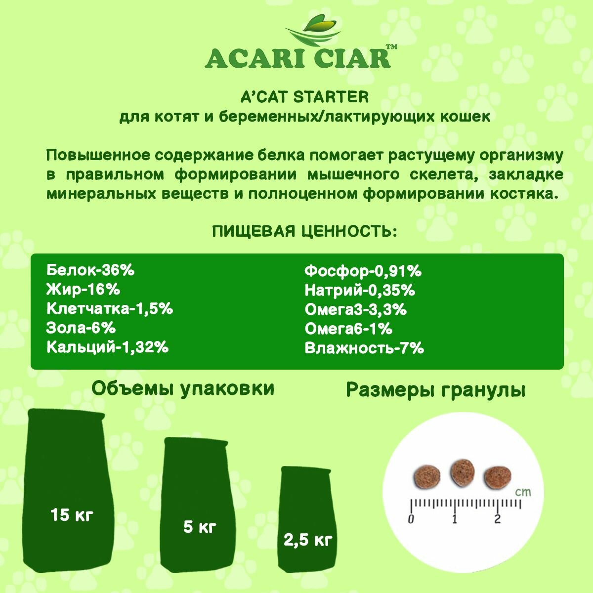 Корм для кошек Сухой корм для кошек Acari Ciar A'CAT Starter 12 кг ( мини гранула ) Акари Киар