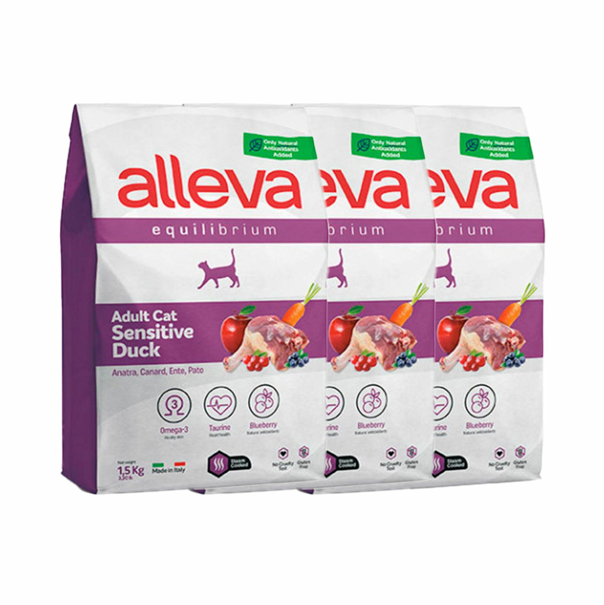 Корм для кошек ALLEVA Полнорационный корм SENSITIVE для взрослых кошек с уткой. 1,5 кг. х 3 шт.