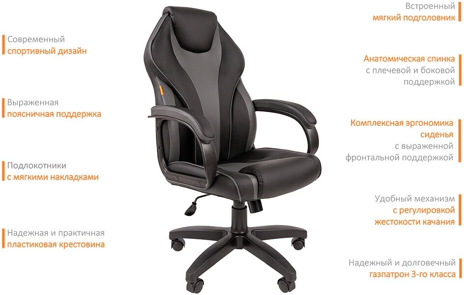 Игровое компьютерное кресло CHAIRMAN 299, экокожа, черный/серый
