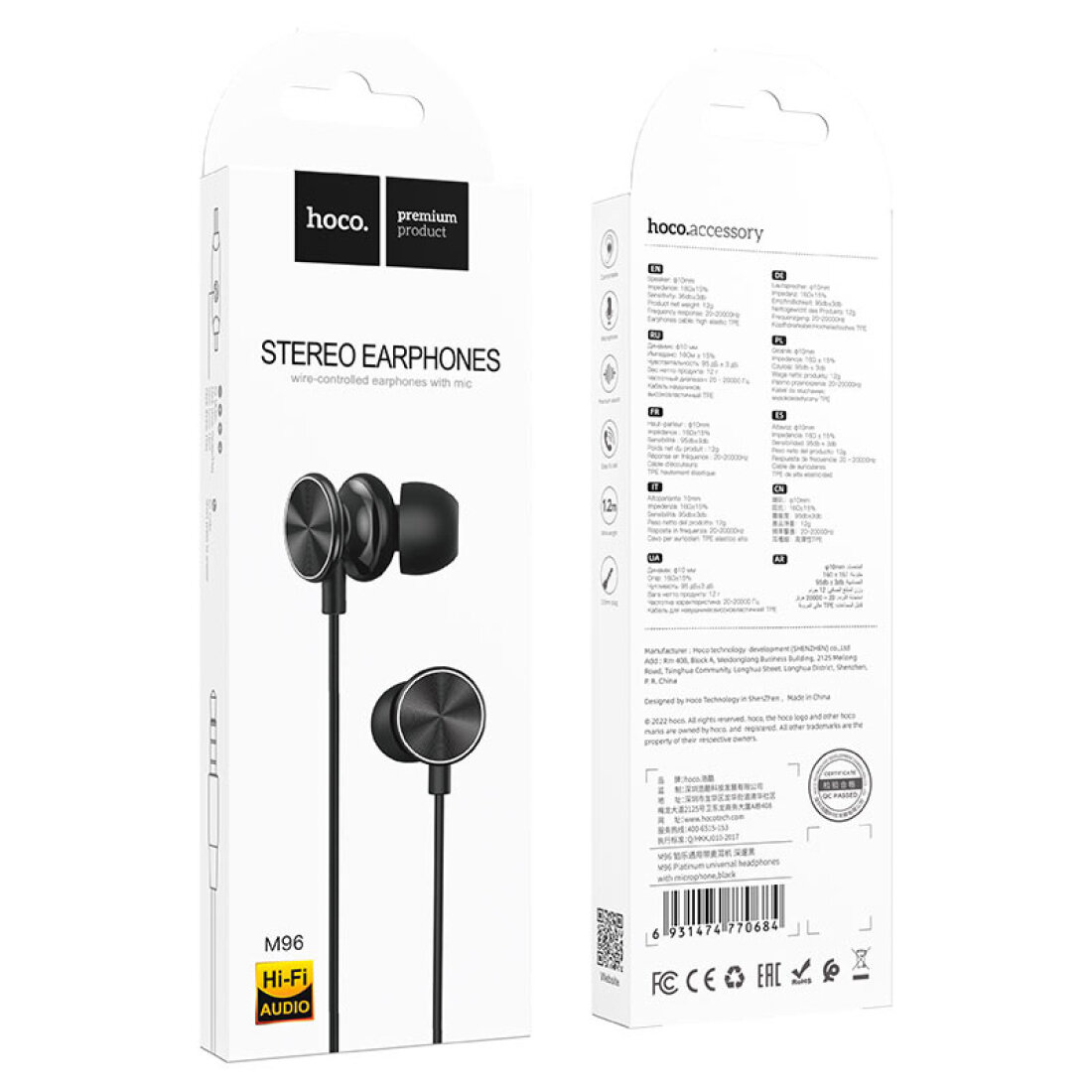 Наушники Проводные наушники M96, Platinum universal headphones, HOCO, вакуумные, черные