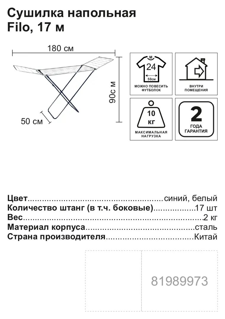 Сушилки для белья Сушилка для белья Sensea Filo металл 17 м, 180x90x50 см