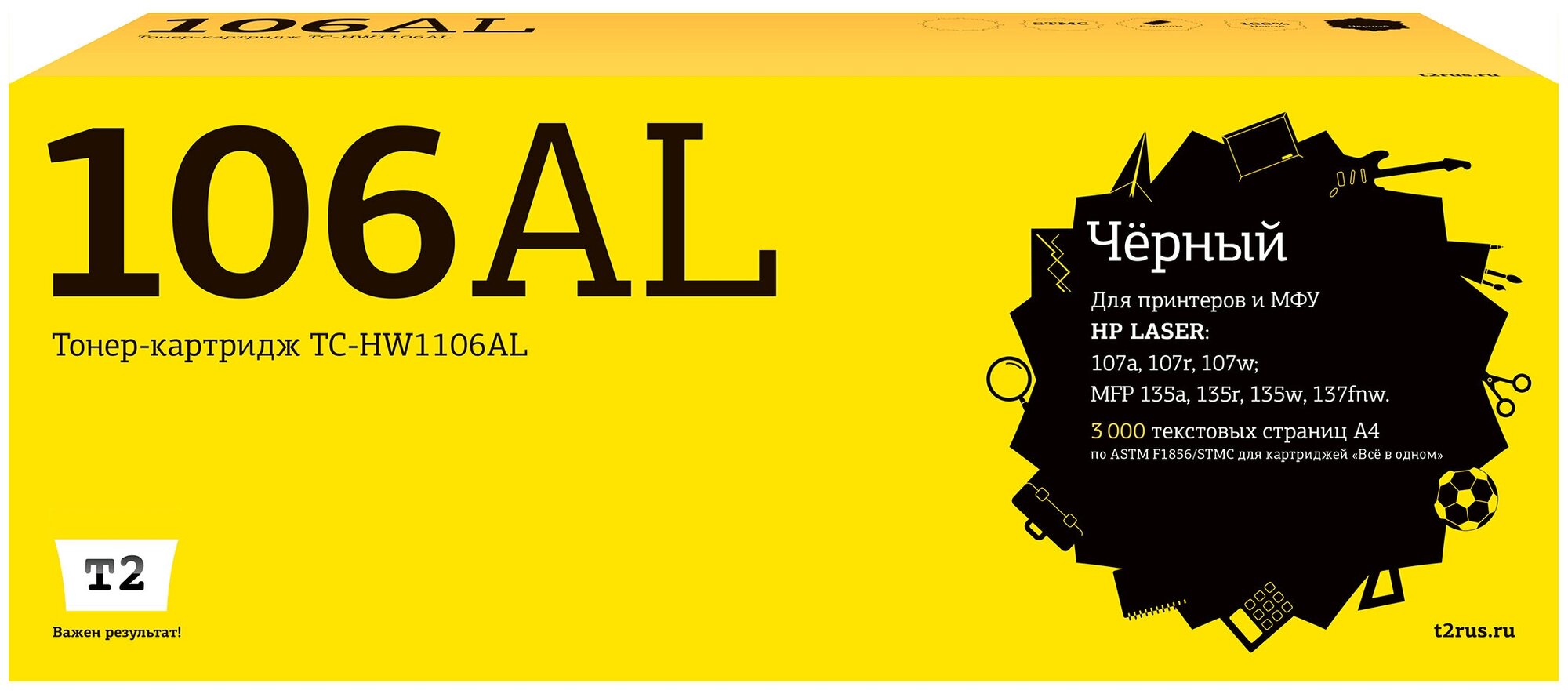 Картриджи Картридж лазерный T2 W1106al для HP Laser 107a/107r/107w/MFP 135a/135r/135w/137fnw (2500 стр.) черны