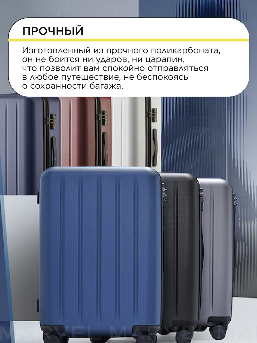 Чемодан Xiaomi NINETYGO Danube 20", серый, пластиковый, 4 колеса, блокировка замков для безопасности