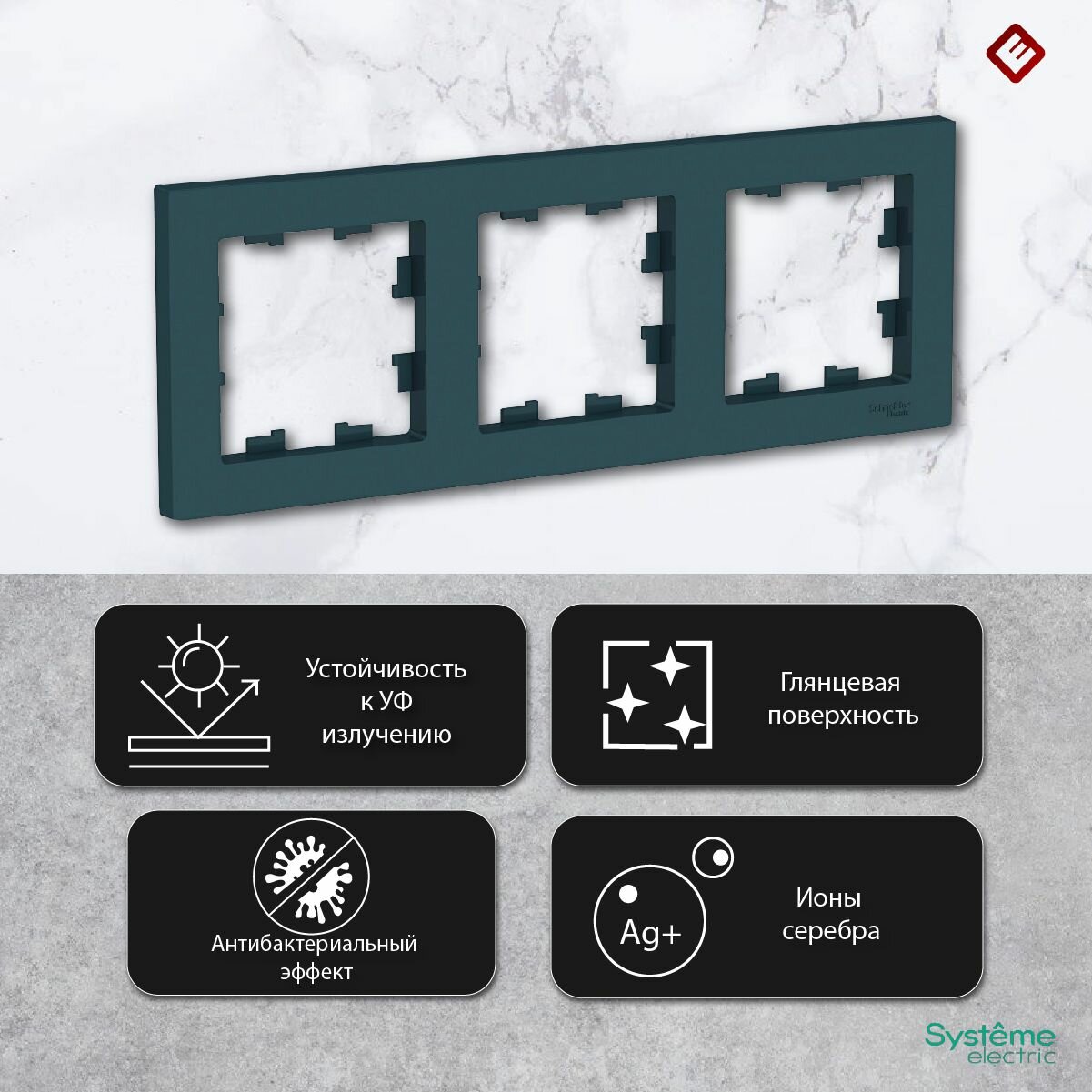 Розетки Рамка 3-м AtlasDesign универс. изумруд SchE, SCHNEIDER ELECTRIC ATN000803 (1 шт.)
