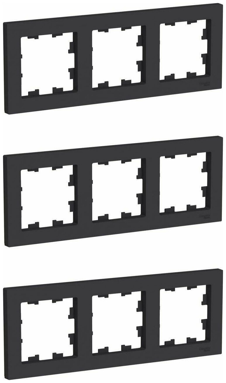 Розетки Рамка Schneider Electric AtlasDesign трехместная универсальная карбон (комплект из 3 шт)