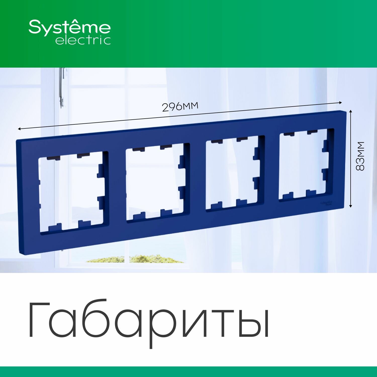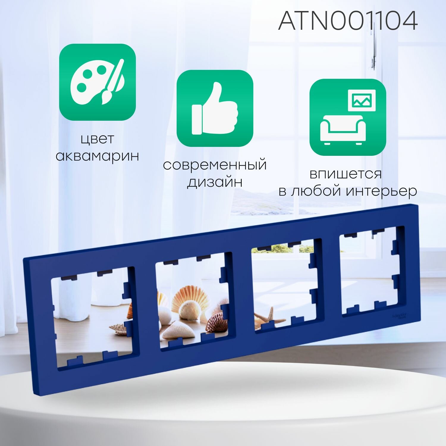 Розетки Рамка Schneider Electric AtlasDesign 4 поста. Аквамарин
