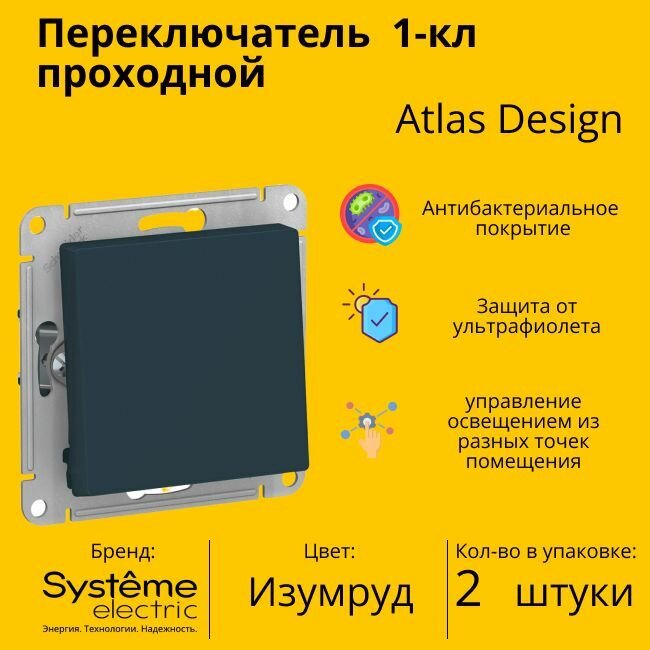 Механизм переключателя проходного 2-кл. СП AtlasDesign 10А IP20 (сх. 6/2) 10AX изумруд | код ATN000865 | Schneider Electric (3шт. в упак.)
