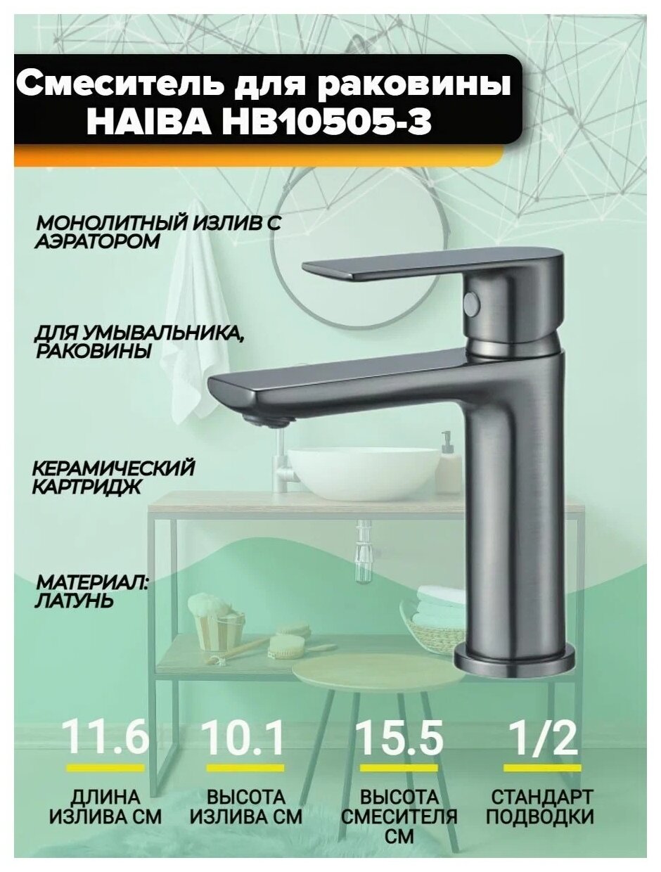 Смеситель для раковины Haiba HB10505-3 пепельный