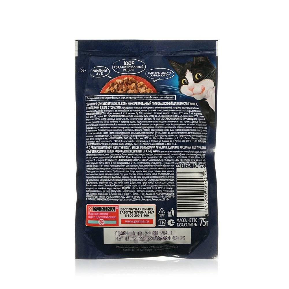 Felix Sensations 75 г пауч влажный корм в удивительном соусе для кошек, говядина с томатами х26 штук
