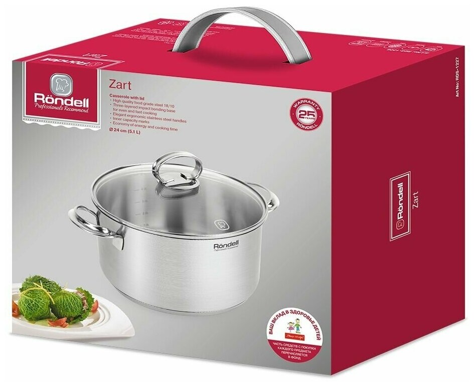 Кастрюля Кастрюля Rondell Zart RDS-1227 5.1л. d=24см (с крышкой) стальной