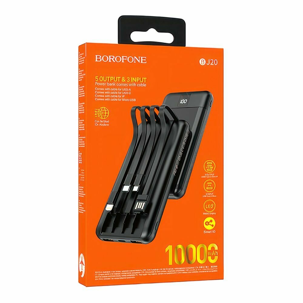 Аккумулятор внешний резервный BOROFONE BJ20 with digital display and cable(10000mAh) (чёрный)