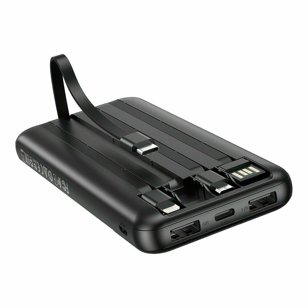 Внешний аккумулятор Borofone BJ20 (встроенный кабель Lightning/MicroUSB/Type-C/USB Type-A) (10000 мАч) черный