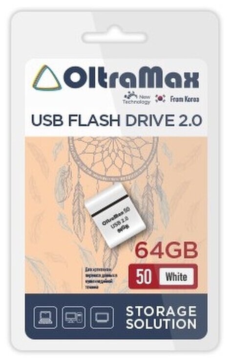 Флэш-накопитель OLTRAMAX OM-64GB-50-White 2.0, белый