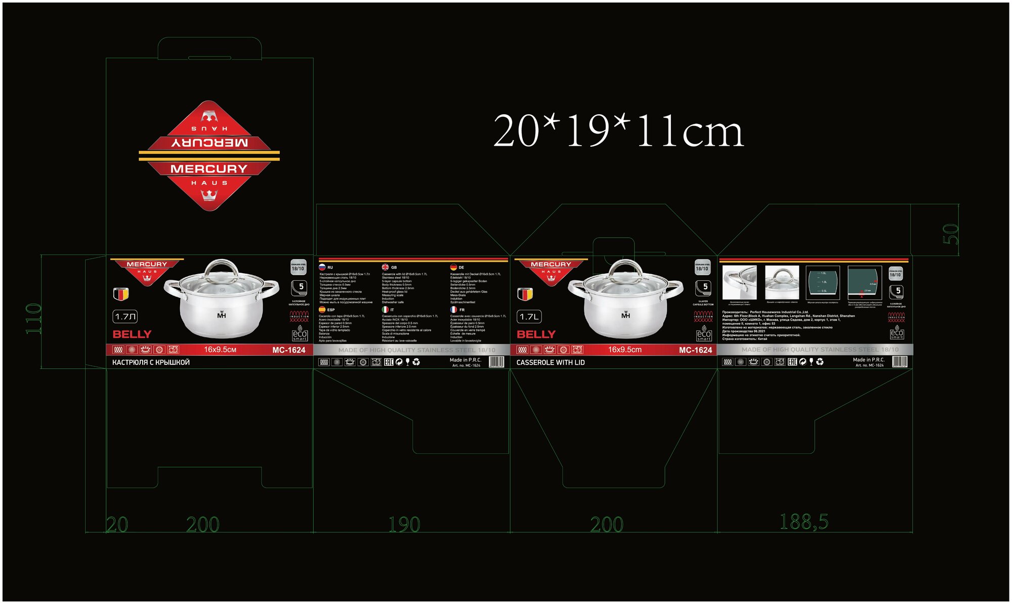 Кастрюля с крышкой "MercuryHaus", MC - 1626 Belly 3,4 л 20*12 см