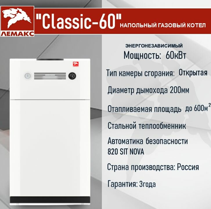 Котел газовый напольный Лемакс Classic - 30 кВт (энергонезависимый, одноконтурный)