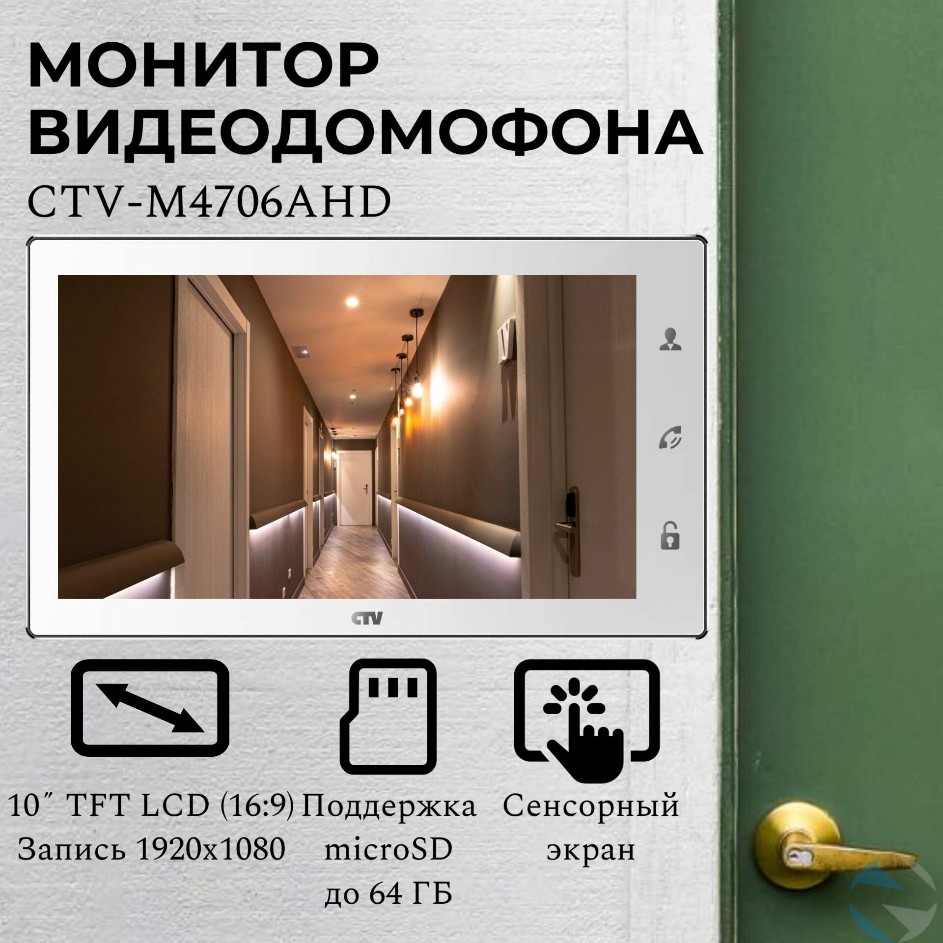 Домофон CTV M4706AHD White - монитор видеодомофона для квартиры, дома или офиса, аналоговый видеомонитор с сенсорным TFT дисплеем 7" (17 см) 1024x600px