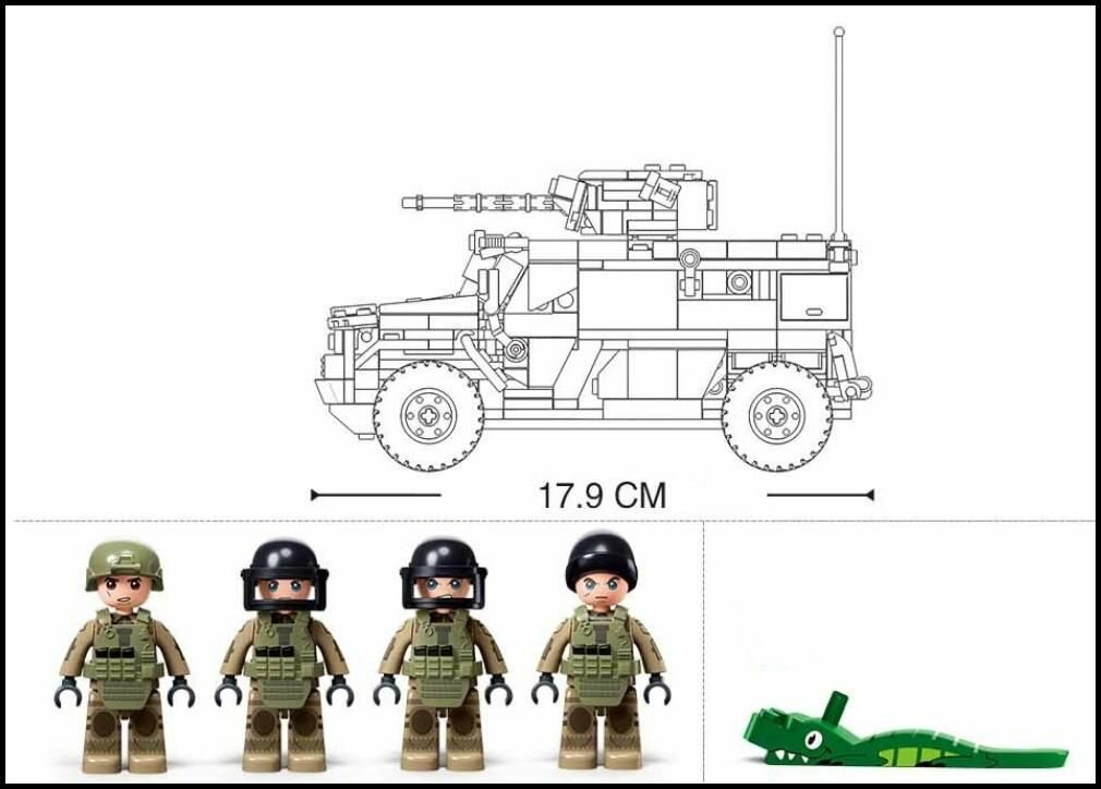 Конструкторы Конструктор SLUBAN серия Армия / Военная техника / Российский бронеавтомобиль M38-B1179 пластиковый детский для мальчиков (798 деталей)