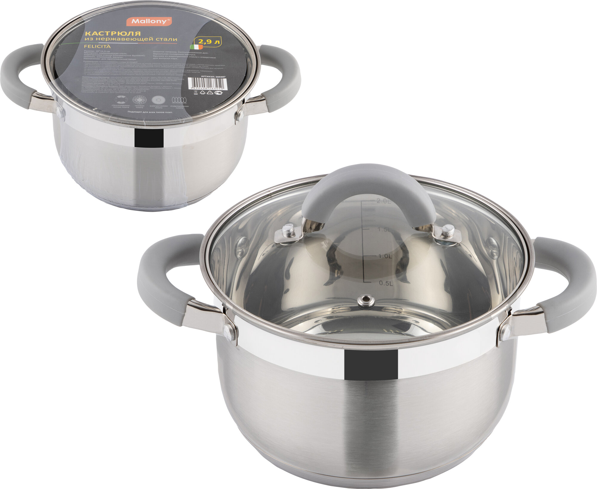 Кастрюля Mallony Felicita из нерж стали со стеклянной крышкой, 2,9л d-18 009387 .