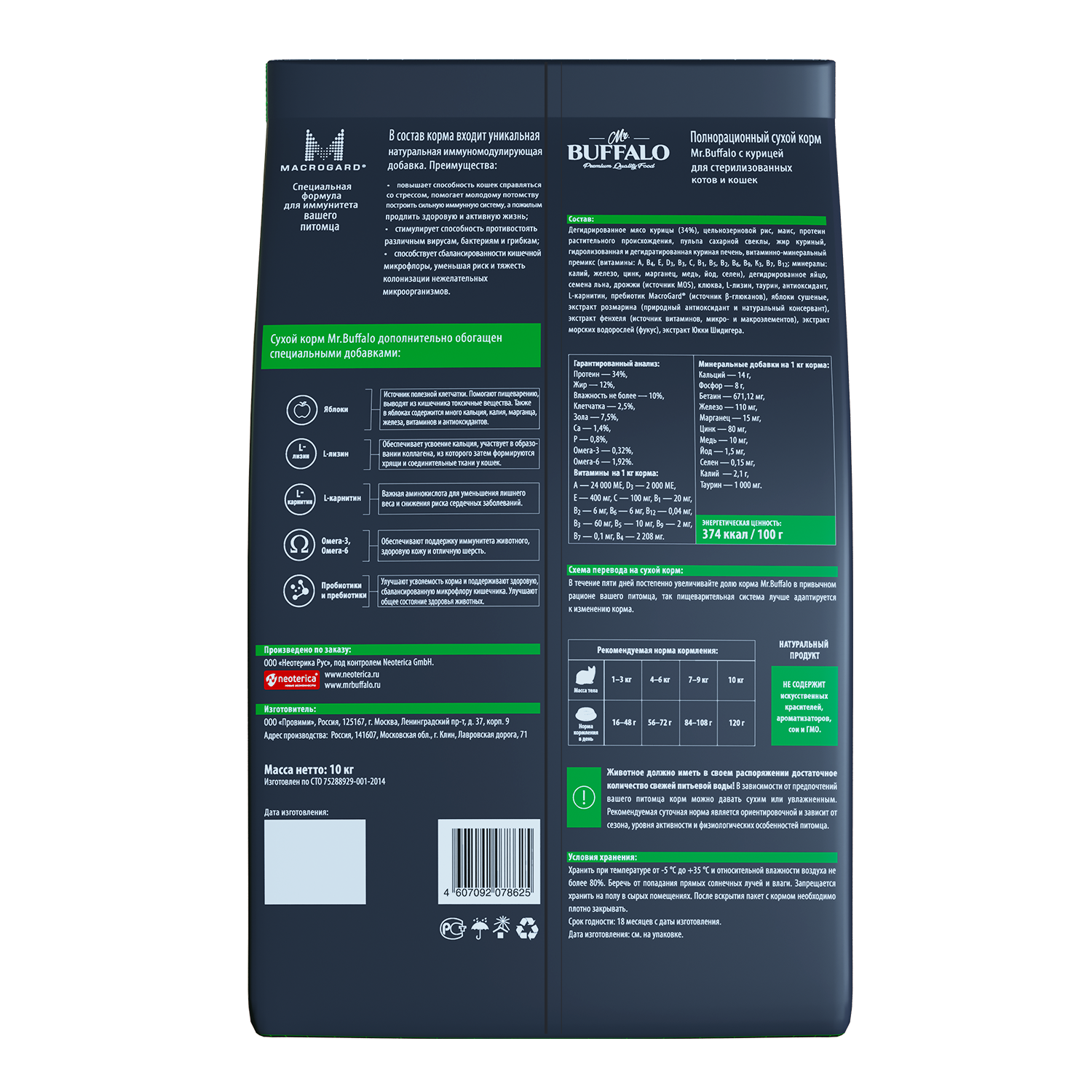 Mr.Buffalo корм для стерилизованных кошек, индейка 10 кг
