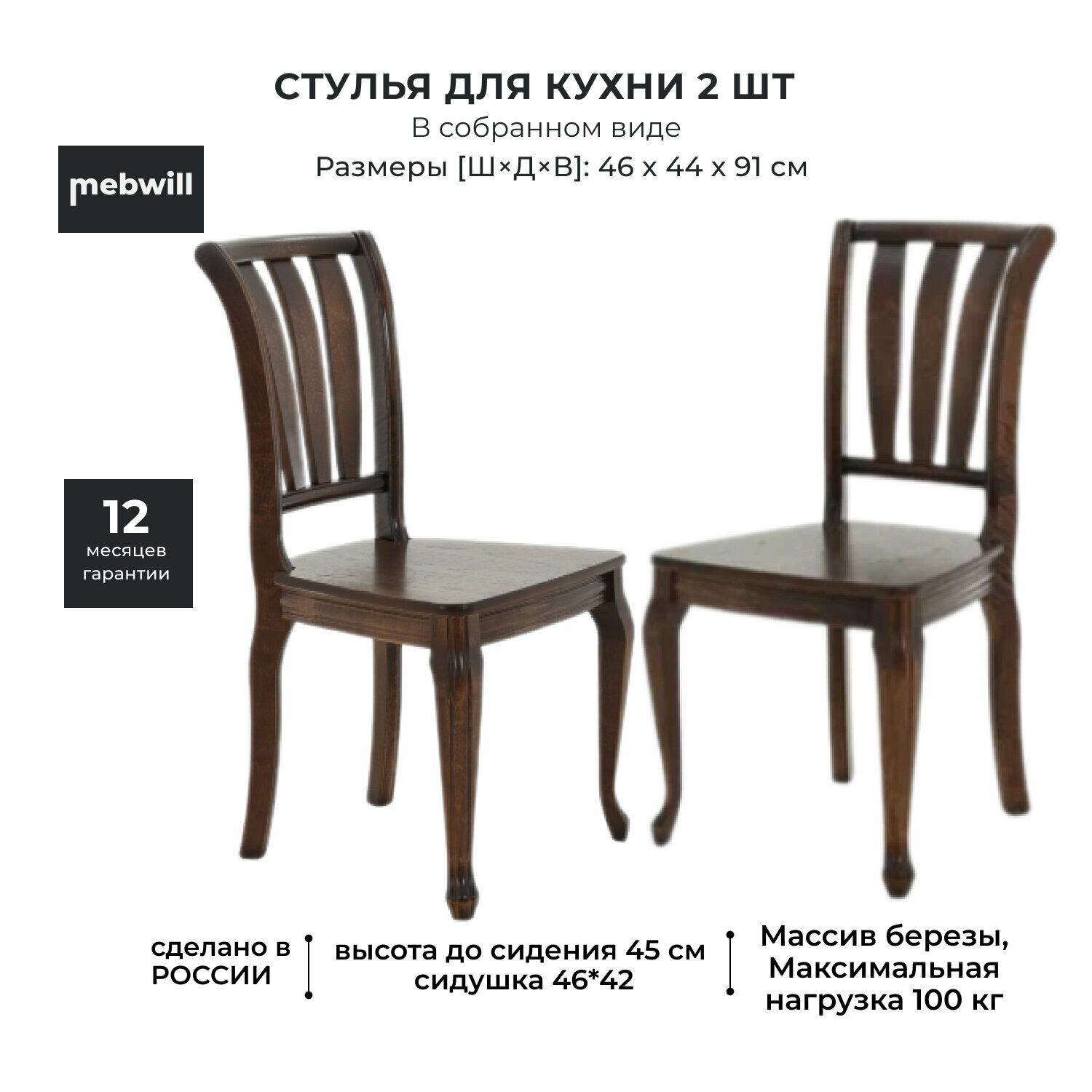 Комплект стульев Аврора Кабриоль жёсткий Орех темный 2 шт