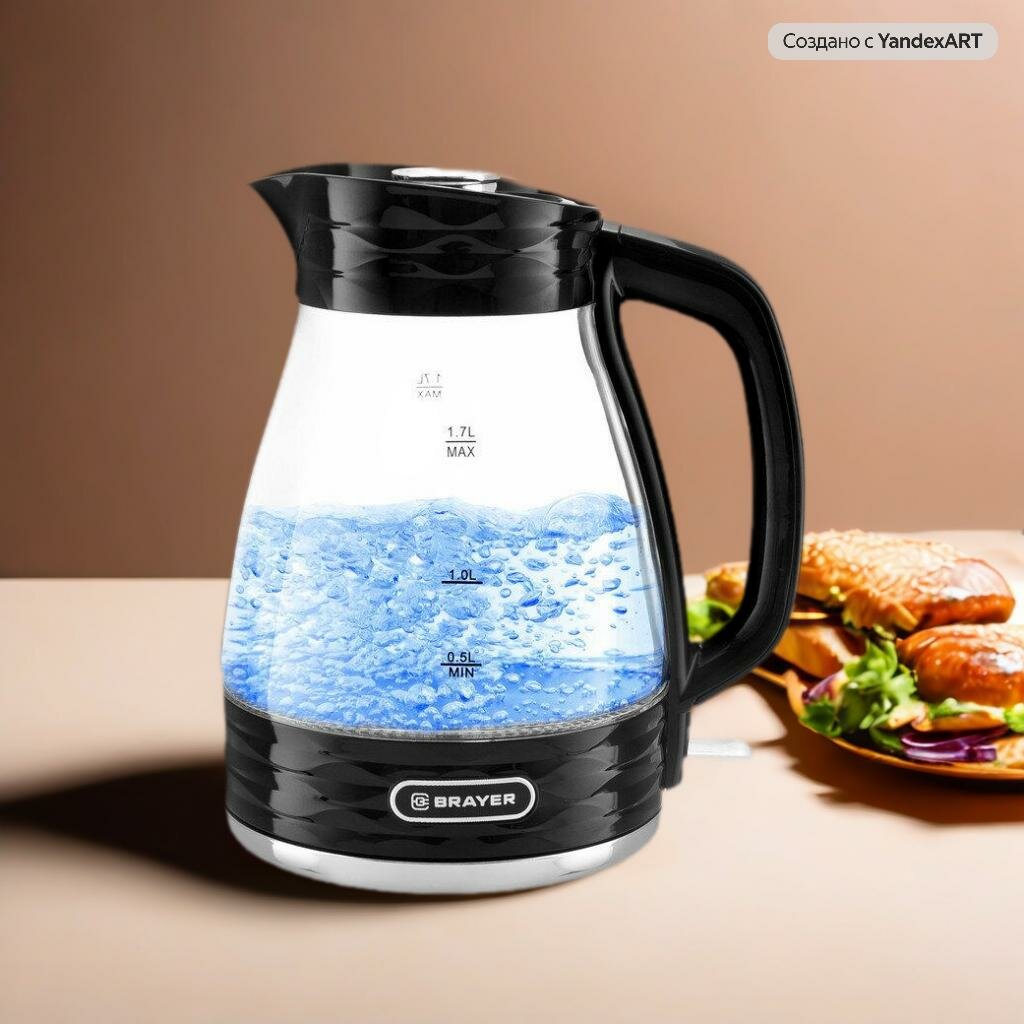 Чайник Brayer 1029BR-BK 2200 Вт, 1,7 л, стекло, чёрный