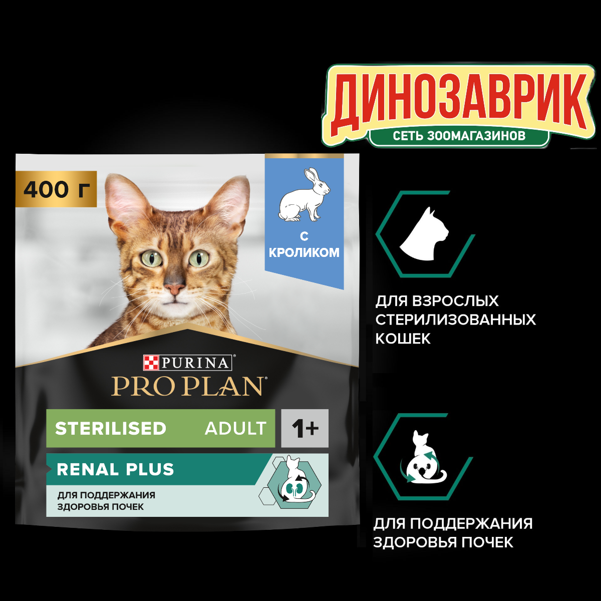 Корм для кошек Сухой корм PRO PLAN Sterilised Adult RENAL PLUS для стерилизованных кошек, с кроликом, 400 гр