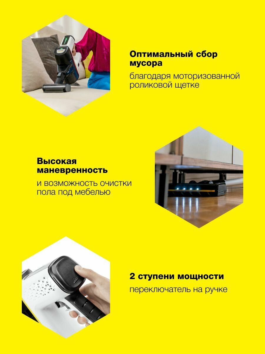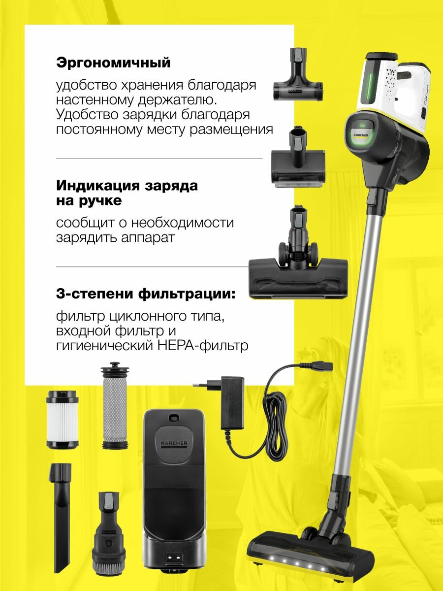 Вертикальный беспроводной пылесос для дома Karcher VC 7 Cordless Yourmax 1.198-700.0 с 5 насадками и зарядной станцией, до 60 минут работы