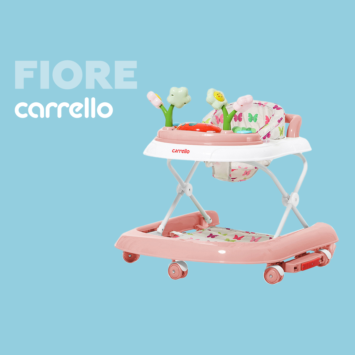 Ходунки Ходунки-качалка CARRELLO Fiore, с игровой панелью, регулировка сиденья, силиконовые колесики, розовые