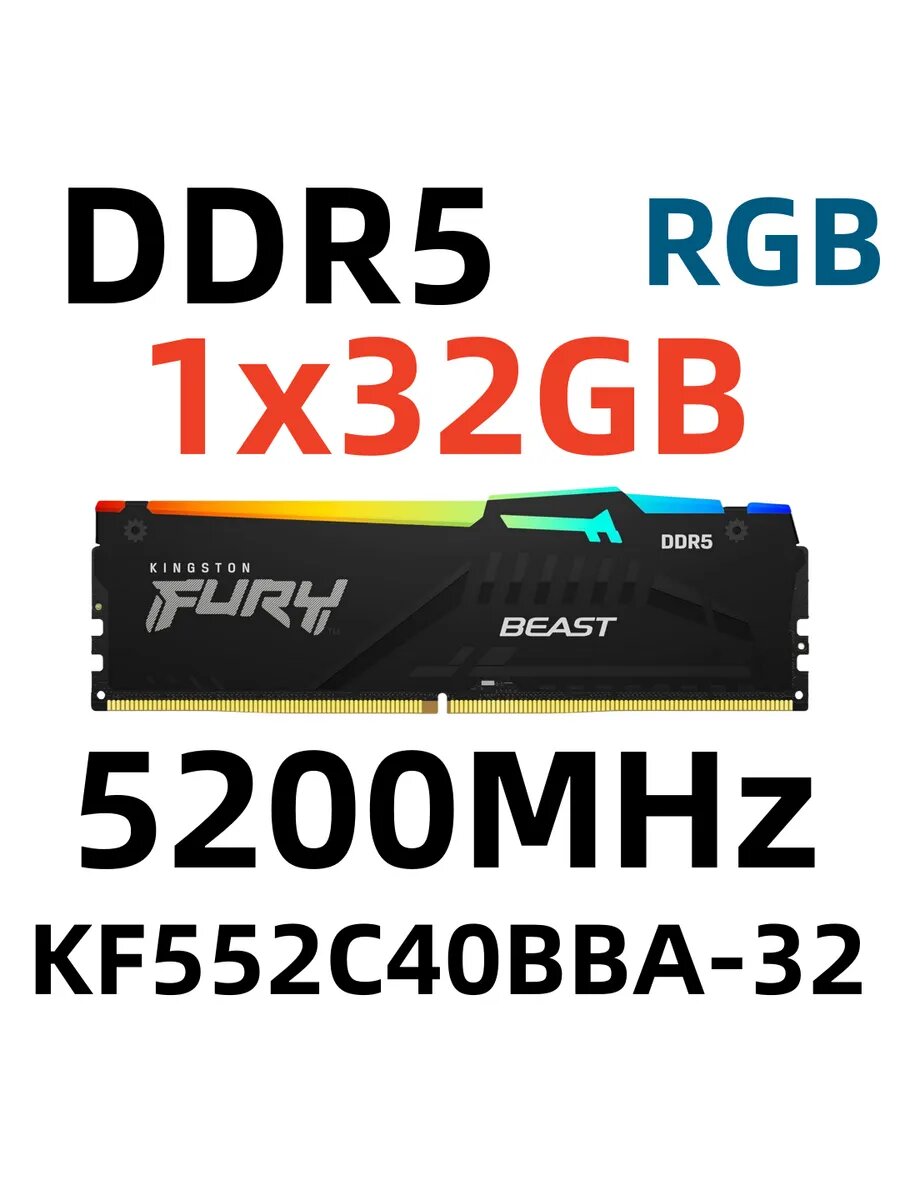 Оперативная память Kingston FURY Beast RGB (16 ГБ x 2 шт.) DDR5 5200 МГц DIMM CL40 KF552C40BBAK2-32