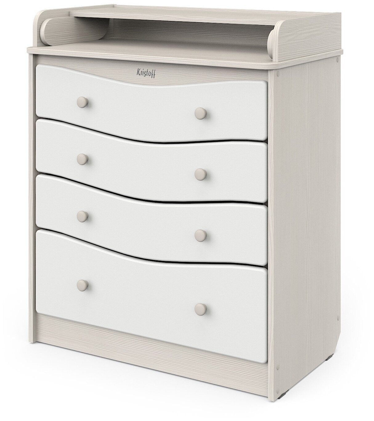 Детский пеленальный комод Атон Сириус Kristoff 800\4 с 4 ящиками, шимо светлый, белый