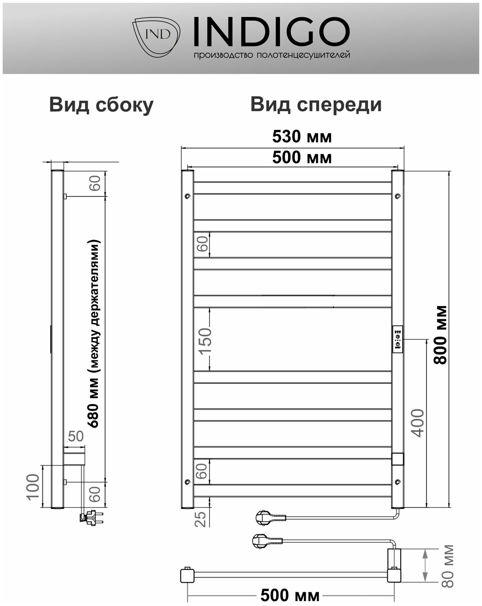 Indigo Электрический полотенцесушитель INDIGO LСLOKS3E80-50BRRt Oktava Slim 3 без полочки, черный