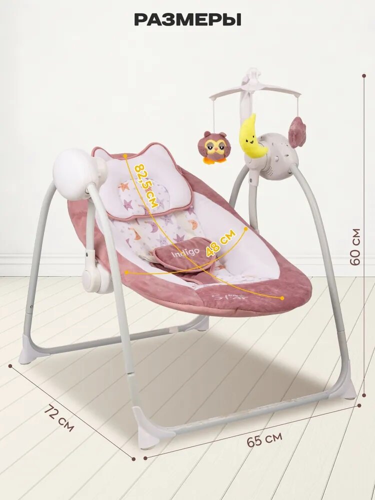 Качели и качалки Электронные качели Indigo STAR розовый, для девочек, для детей с рождения 0+