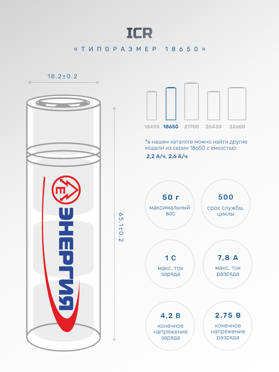 Аккумуляторы и батарейки Аккумулятор АО Энергия icr18650 лиц/2,2/18650