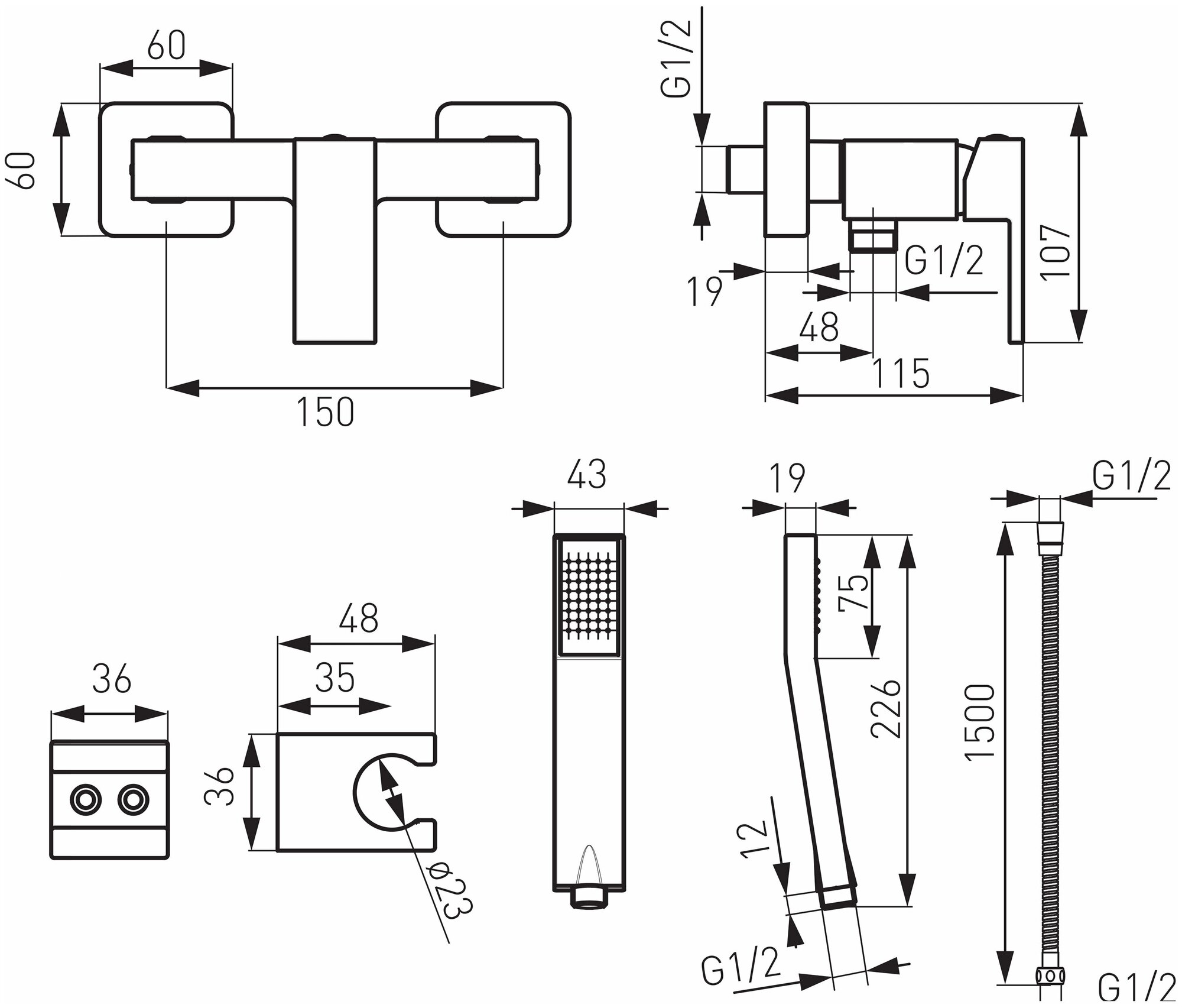 Смесители Смеситель для душа FERRO ZICCO Хром BZI77 с душевым комплектом