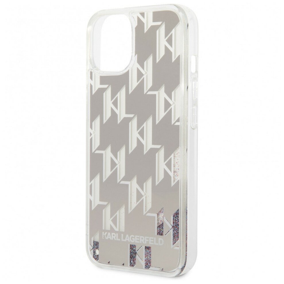 Чехлы для мобильных телефонов Karl Lagerfeld чехол с блестками для iPhone 14 Plus, Liquid glitter Monogram серебристый