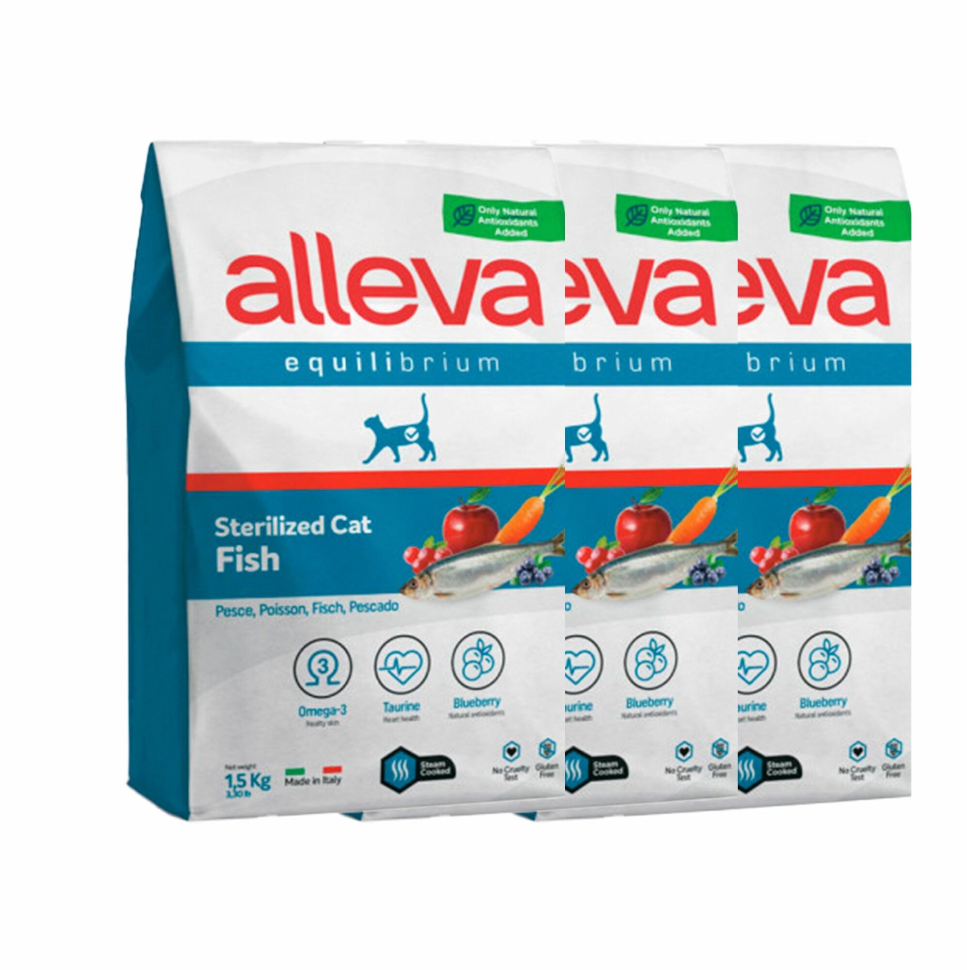 Корм для кошек ALLEVA Полнорационный корм для взрослых стерилизованных кошек с рыбой. 1,5 кг. х 3 шт.