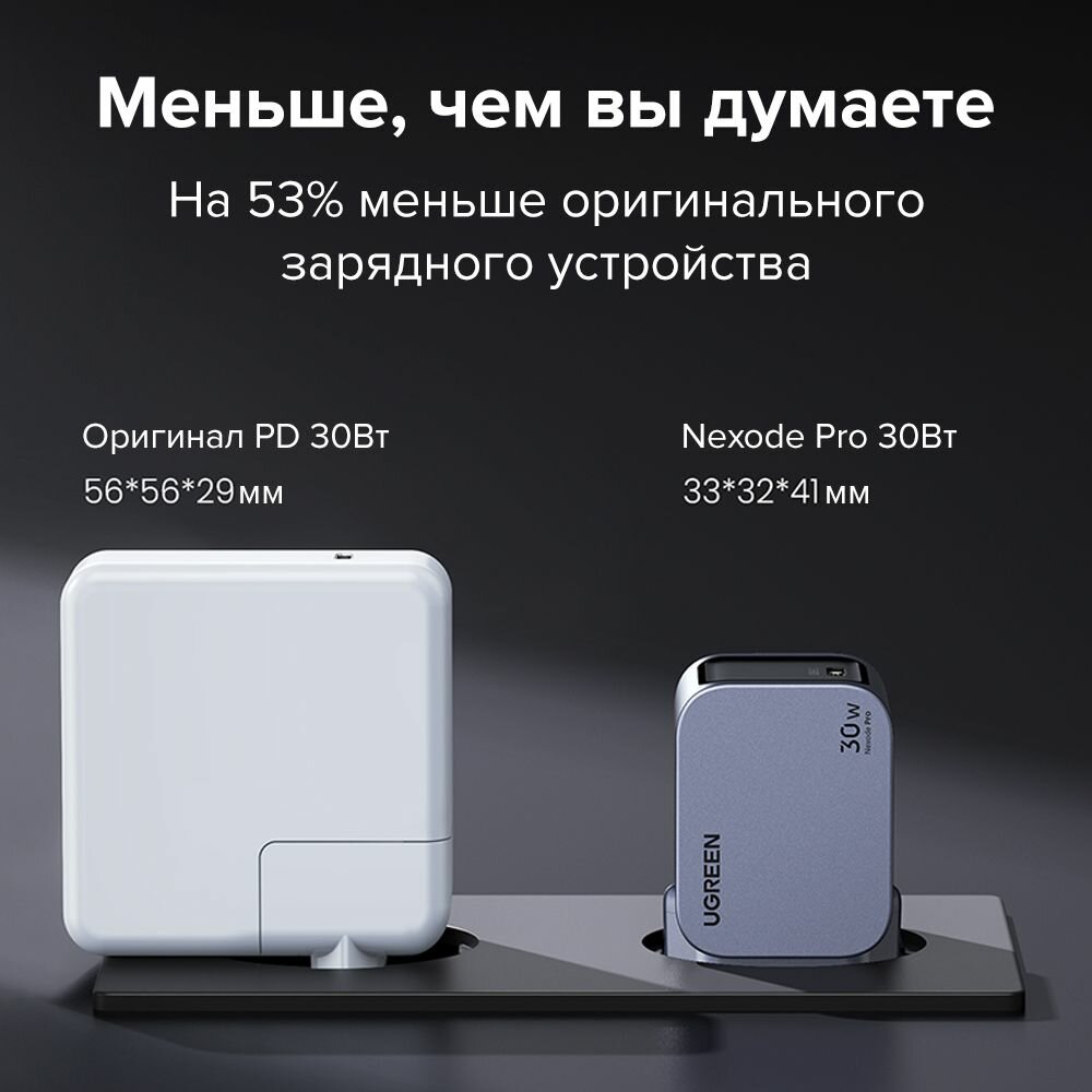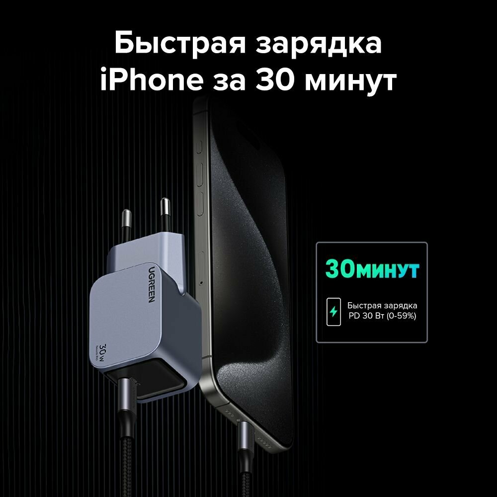 Сетевое зарядное устройство UGREEN CD319 (25257) Nexode Mini 30W USB-C PD GaN с кабелем 1м 60W. Цвет: серый космос 2 290 ₽ Подробнее