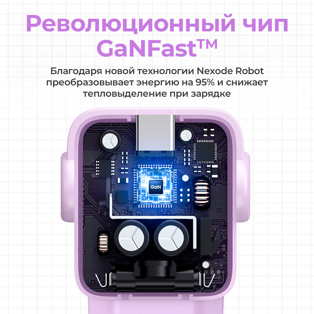 Сетевое зарядное устройство Ugreen CD361 65W Nexode Robot 2xUSB-C, 1xUSB-A GaN, фиолетовый (35291) 4 999 ₽ Подробнее
