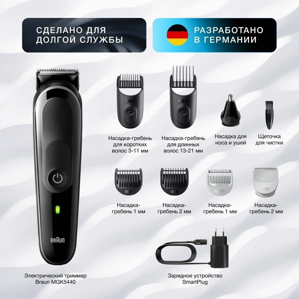Триммер универсальный Braun MGK5440, 5 насадок, 13 настроек длины, светодиодный индикатор заряда, черный 8 690 ₽ Подробнее