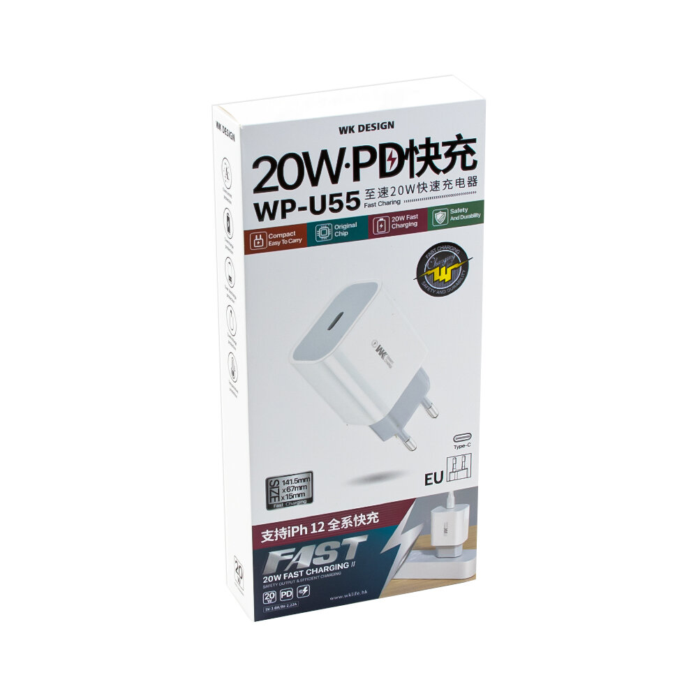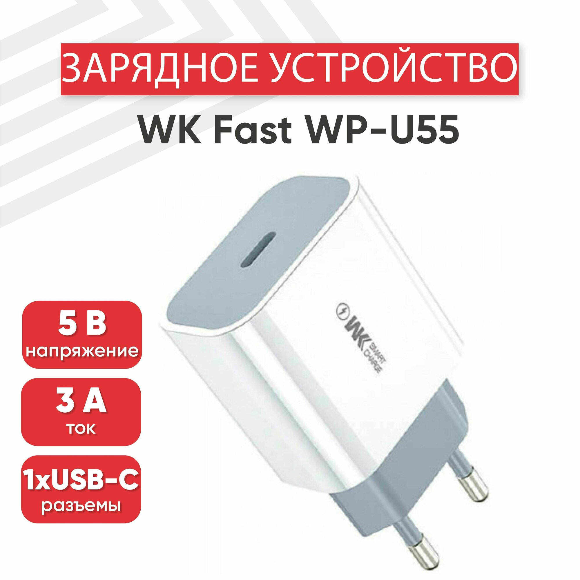 Зарядки для гаджетов СЗУ WK Fast WP-U55 1xUSB-C, PD 20W (белый)