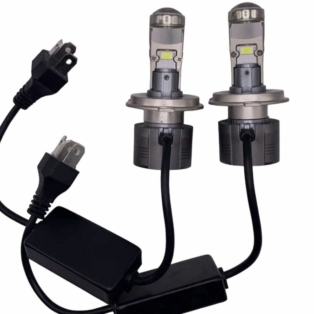 Автолампы Автомобильные светодиодные линзованные лампы в фары цоколь h4 ближнего, дальнего света, 6000K, 12-24V, 2шт