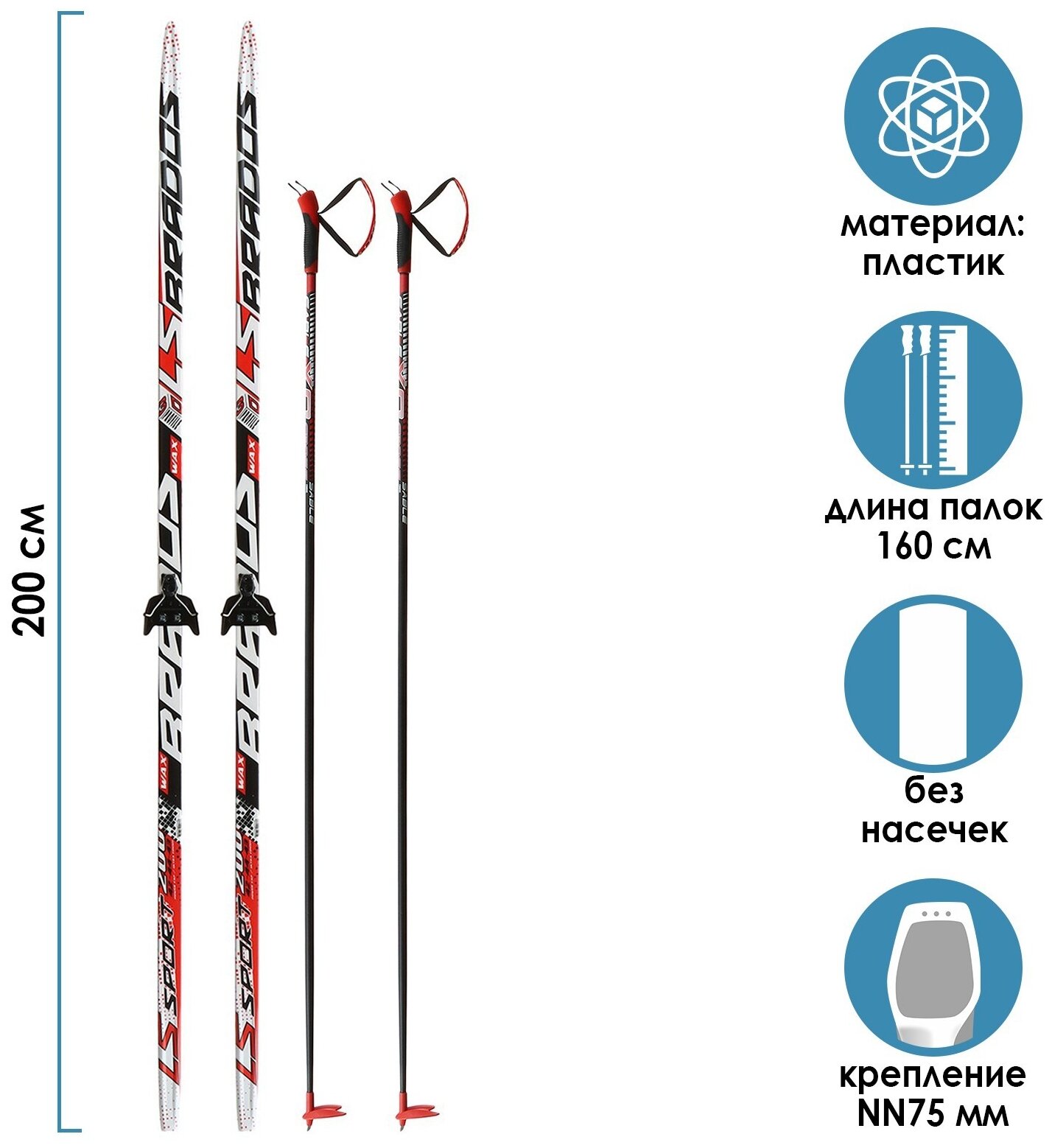 Бренд ЦСТ Комплект лыжный: пластиковые лыжи 200 см без насечек, стеклопластиковые палки 160 см, крепления NN75 мм «бренд ЦСТ», цвета микс 4 246 ₽ Подробнее