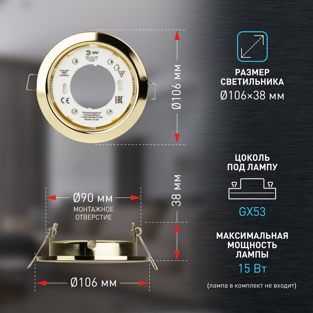 Светильник встраиваемый ЭРА KL35, GХ53 634 ₽ Подробнее