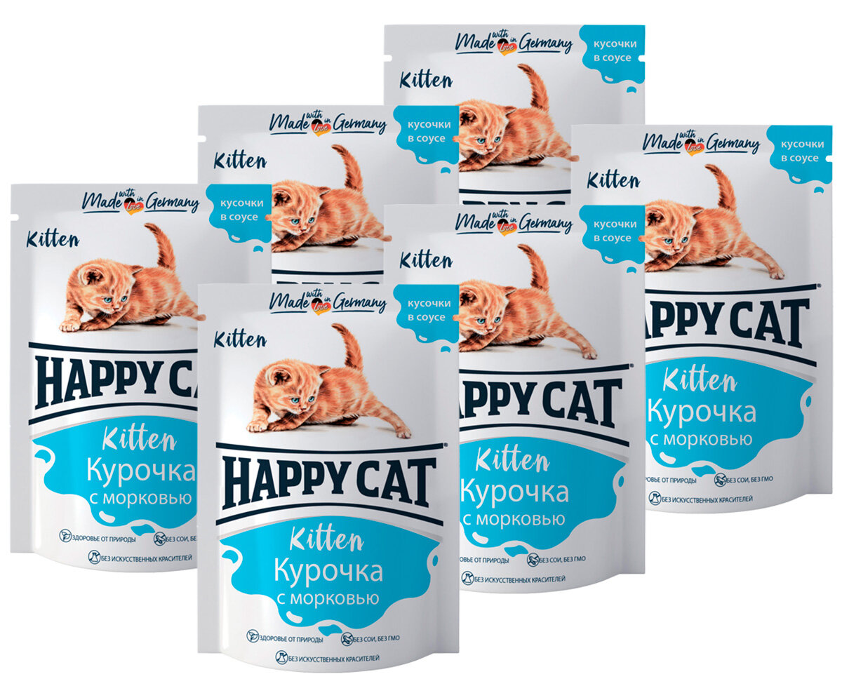 Корм для кошек HAPPY CAT для котят с курицей и морковью в соусе пауч 100 гр 7502312 NEW 100 гр х 6 шт