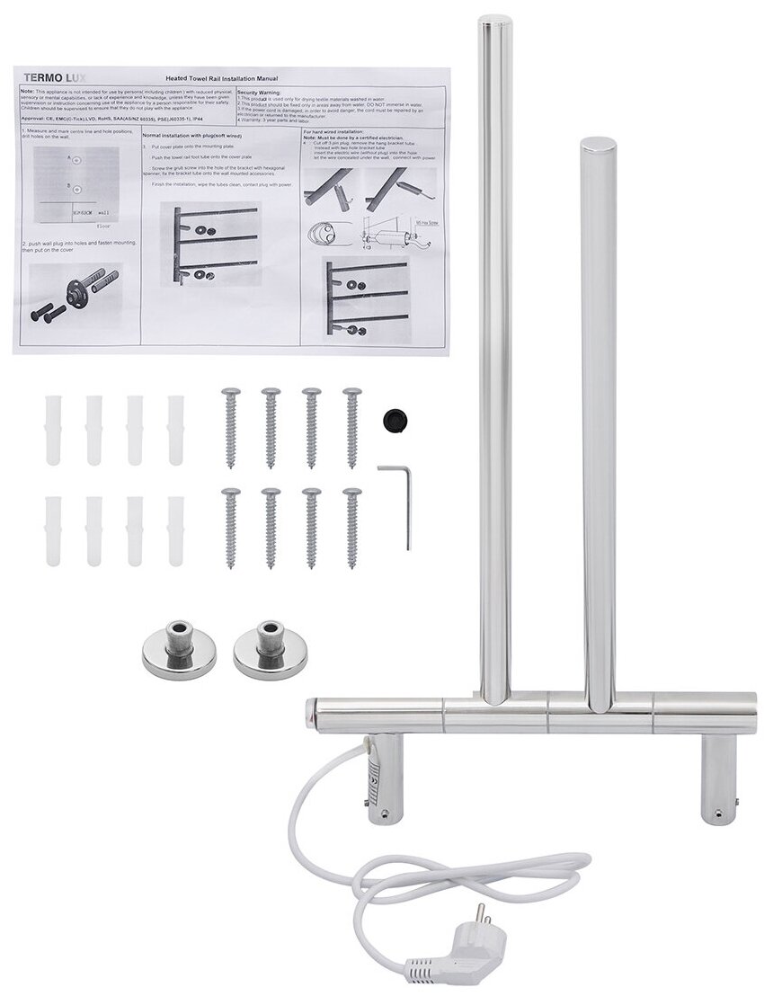Полотенцесушители Полотенцесушитель электрический c включателем TERMLUX E305-2ES (E-образный поворотный, 305х500х110, 2-перекладины, 20 Вт, подключение универсальное)