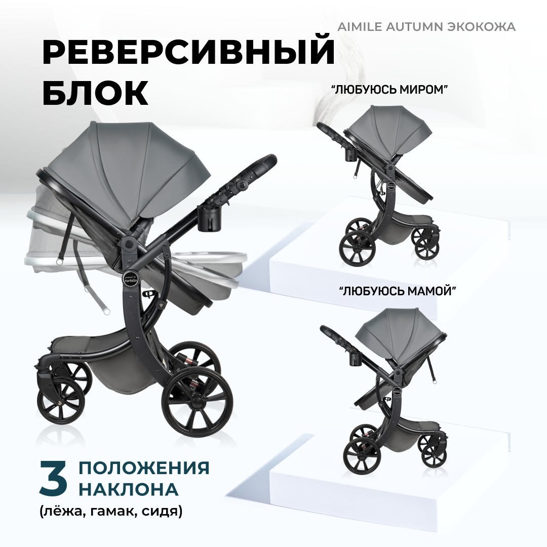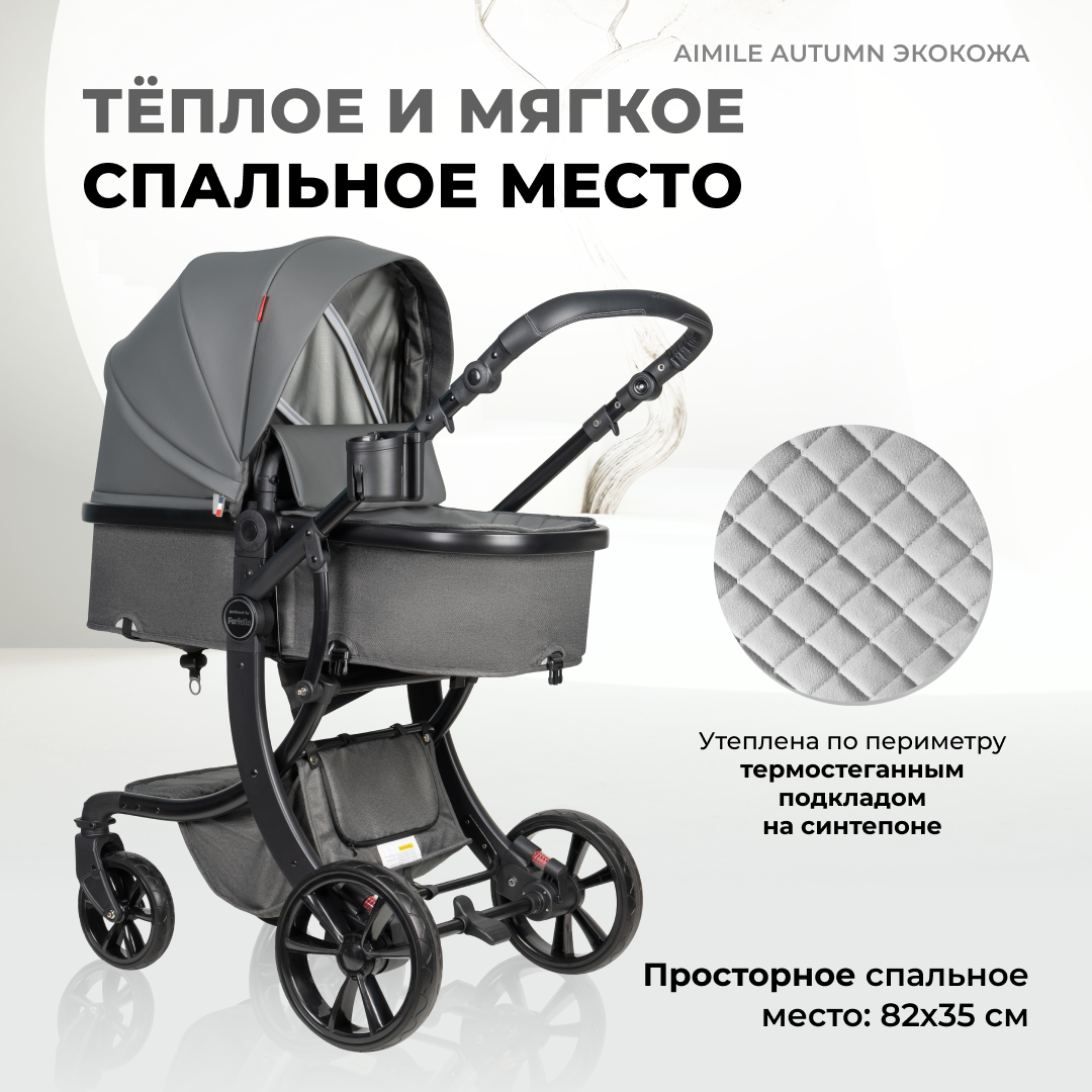 Коляска трансформер 2 в 1 для новорожденных Aimile Original Autumn, Экокожа, Темно-серый 22 646 ₽ Подробнее
