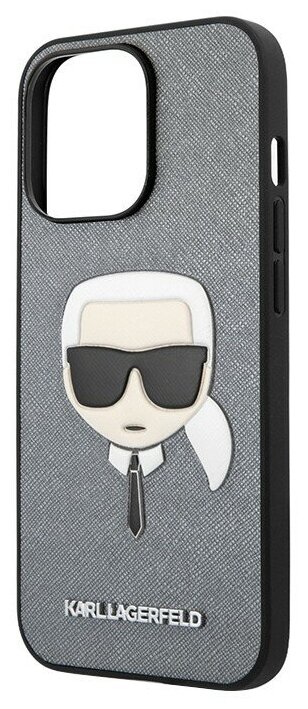 Чехол Lagerfeld PU Saffiano Karl's Head Hard для iPhone 13 Pro, серебристый