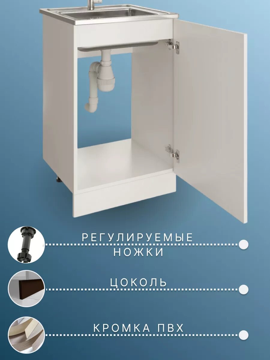 Кухонный гарнитур, Модуль напольный, тумба под мойку для кухни, 50х43,6х82, белый 4 550 ₽ Подробнее